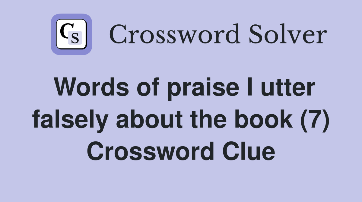 Words of praise I utter falsely about the book (7) Crossword Clue