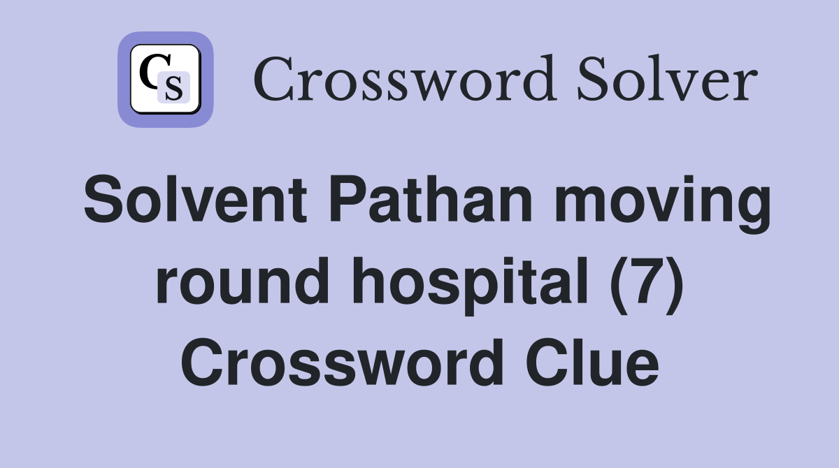 Solvent Pathan moving round hospital (7) Crossword Clue Answers