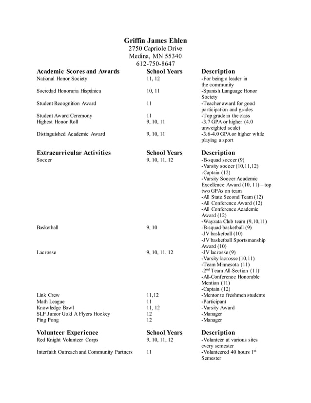 Extracurricular Activities On Resume College Application Activities