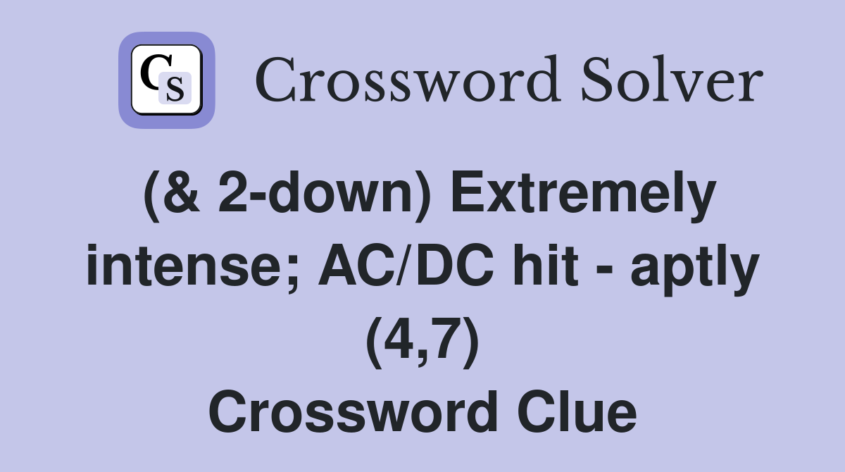 ( 2 down) Extremely intense AC/DC hit aptly (4 7) Crossword Clue