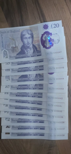 EXTREMELY RARE QUINN Bank Notes 12 Consecutive Serial Number £20 Notes