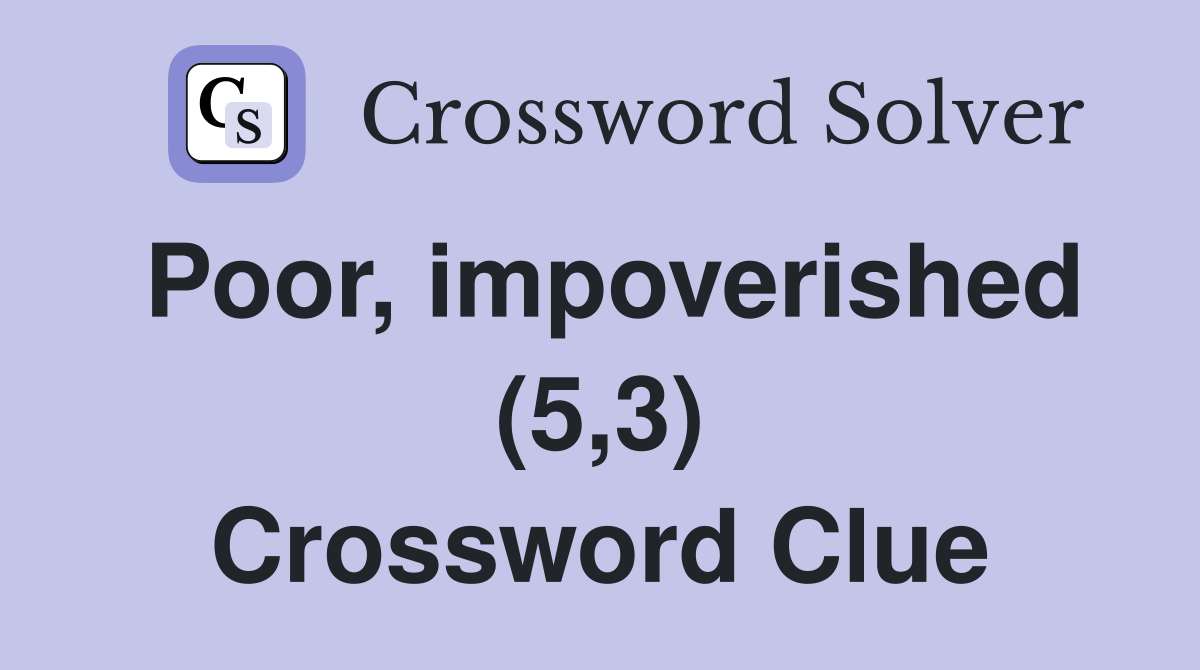 Poor impoverished (5 3) Crossword Clue Answers Crossword Solver