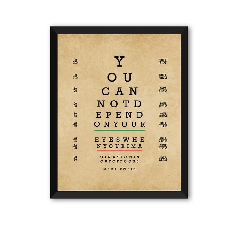 Mark Twain Quote Eye Chart Art Print Home Office Decor (8x10 Unframed