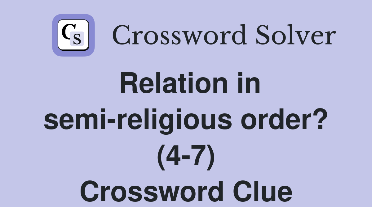 Relation in semi religious order? (4 7) Crossword Clue Answers