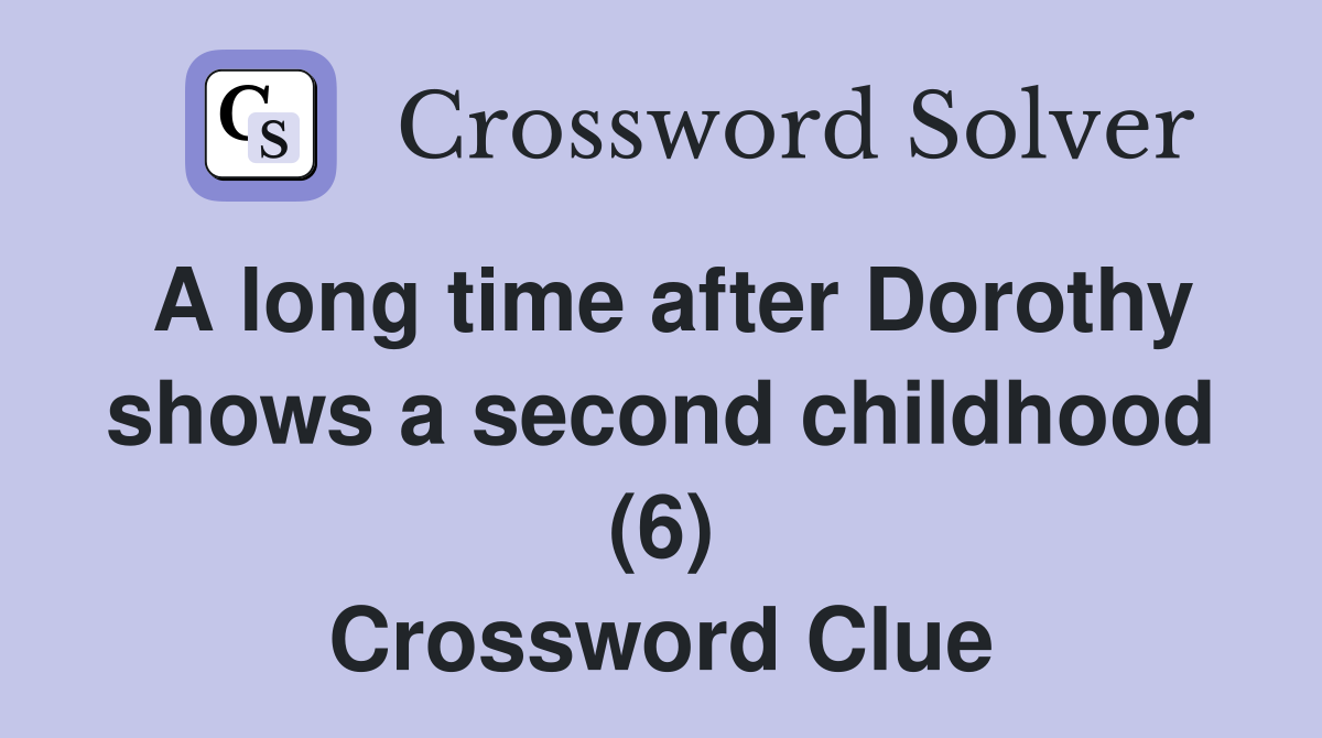 A long time after Dorothy shows a second childhood (6) Crossword Clue