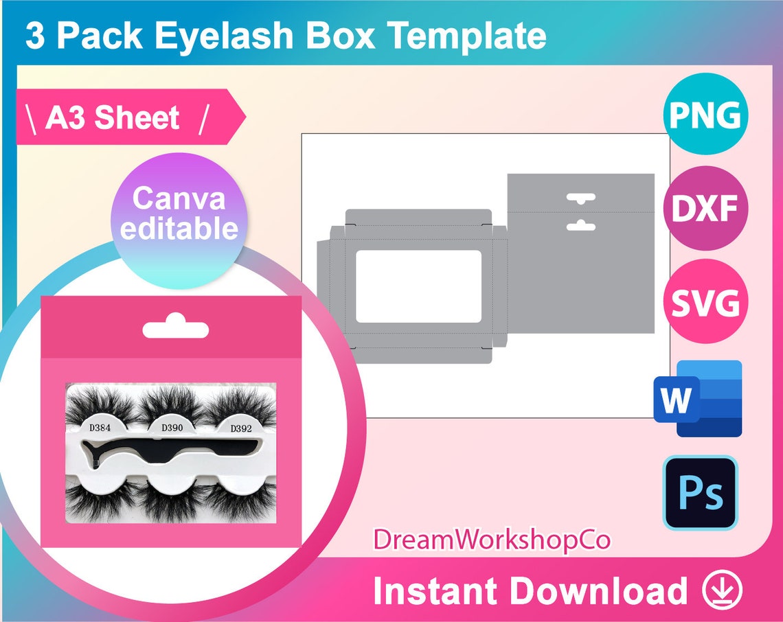 3pack Eyelash Box Template Lash Box Template Svg Canva DXF Etsy