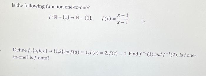 Solved Is the following function one to one? Chegg com