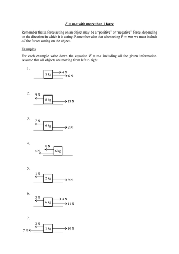 Worksheet to practise writing F=ma correctly for more than 1 force