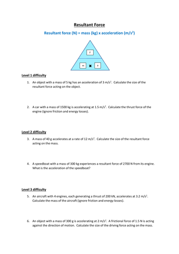 GCSE Physics Resultant Force (F=ma) Questions and Answers Teaching