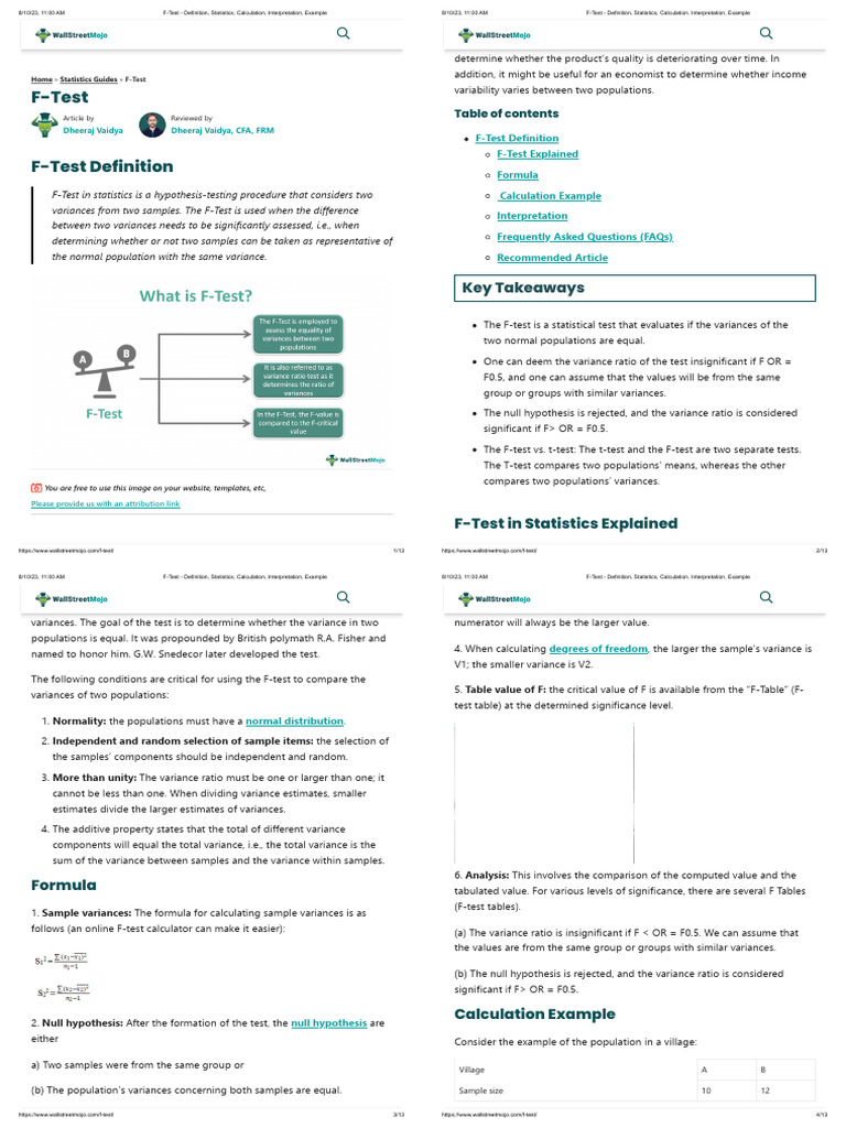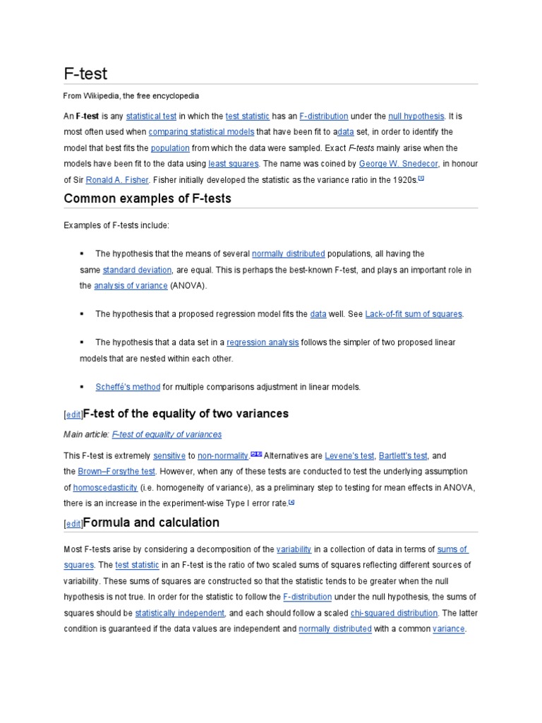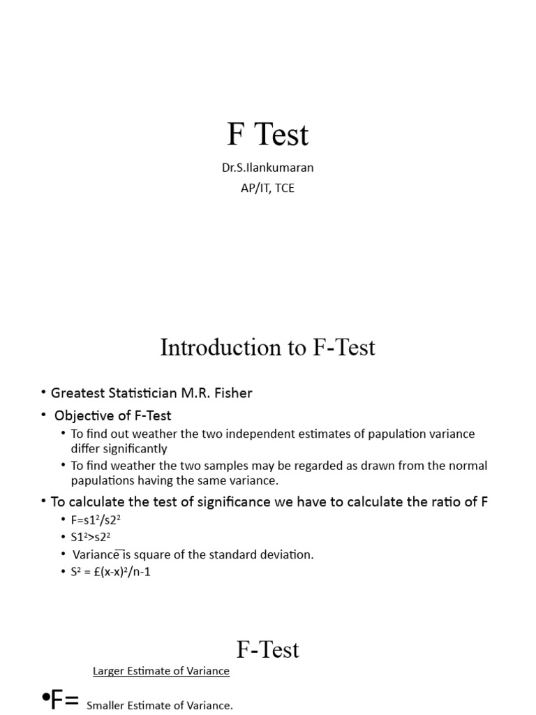 F Test Formula PDF F Test Statistical Hypothesis Testing