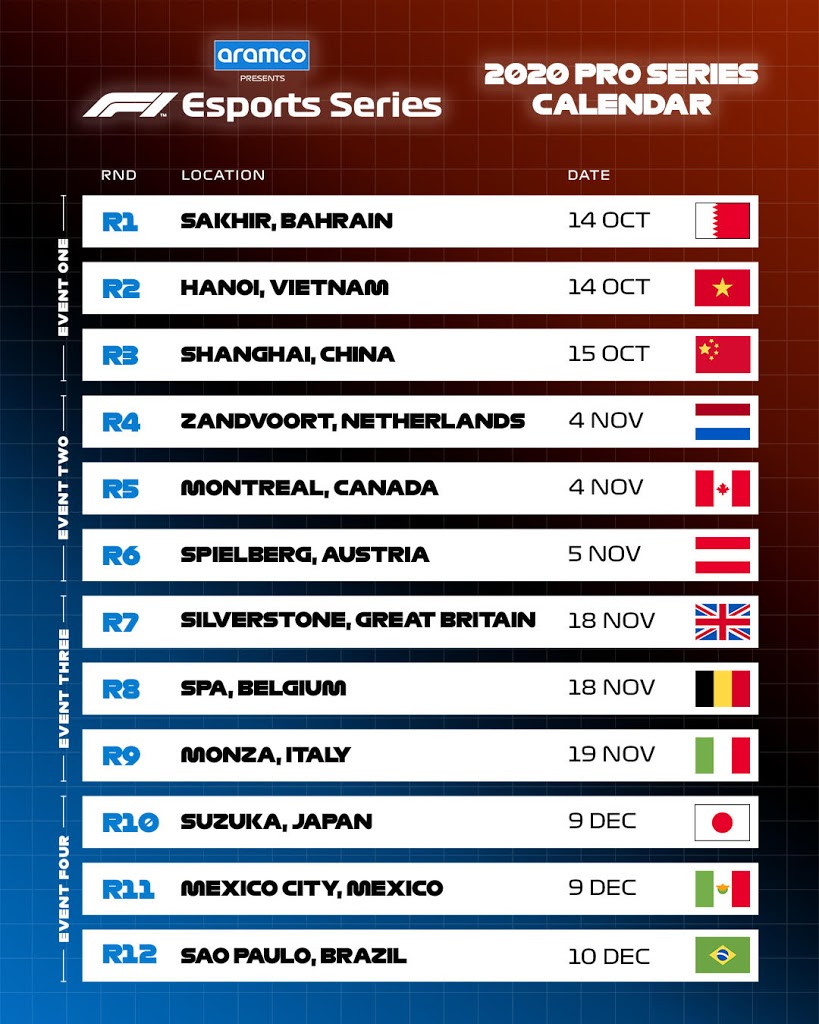 2022 F1 Esports Series Pro Championship Calendar Revealed