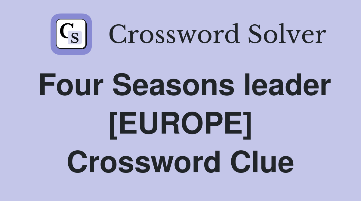 Four Seasons leader EUROPE Crossword Clue Answers Crossword Solver