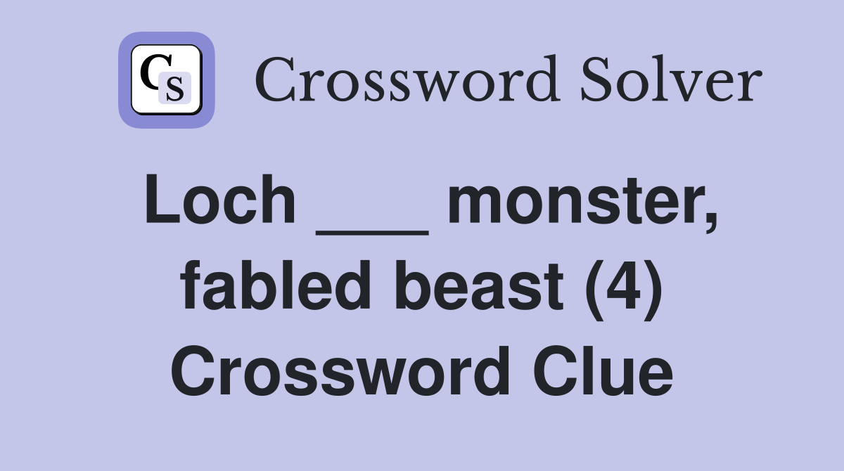 Loch monster fabled beast (4) Crossword Clue Answers Crossword