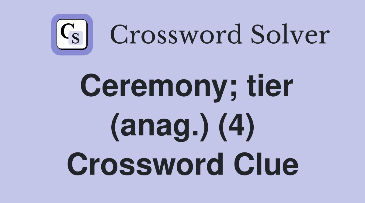 Ceremony tier (anag ) (4) Crossword Clue Answers Crossword Solver