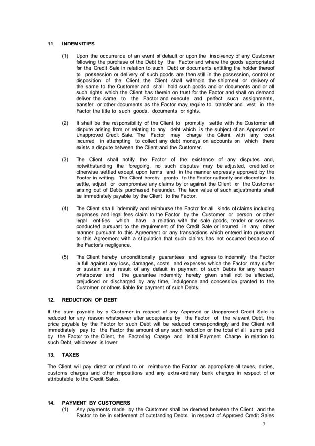Factoring Agreements Details (Including 7 Sample Contracts)