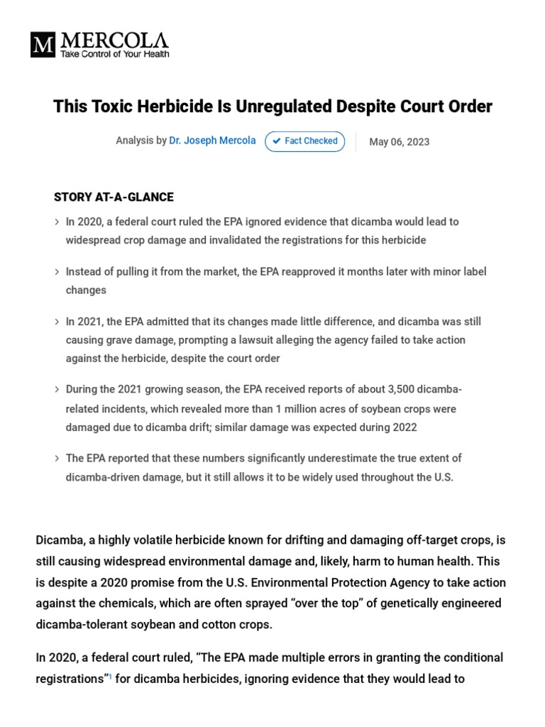 EPA Continues to Allow Widespread Use of Highly Volatile Dicamba