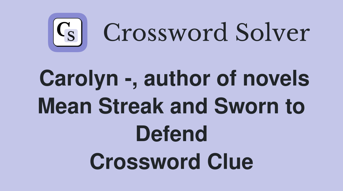 Carolyn author of novels Mean Streak and Sworn to Defend Crossword