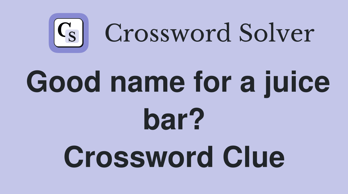 Good name for a juice bar? Crossword Clue Answers Crossword Solver