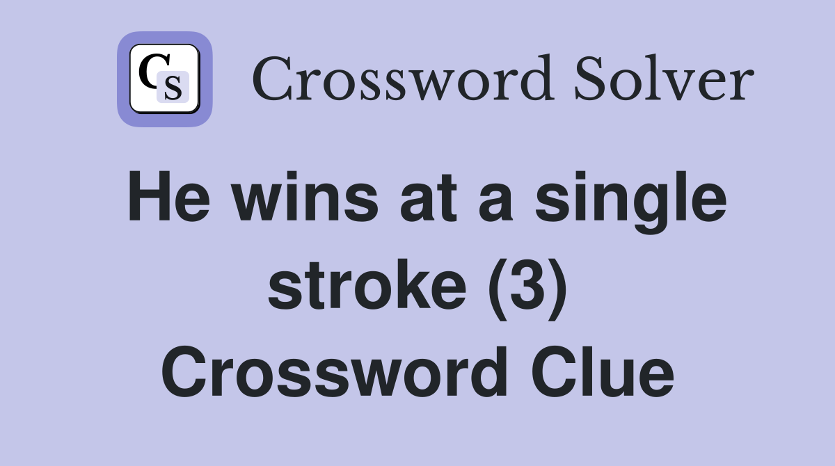 He wins at a single stroke (3) Crossword Clue Answers Crossword Solver