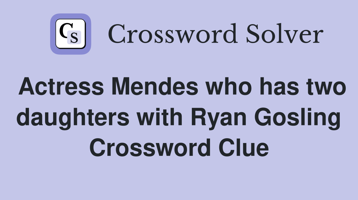 Actress Mendes who has two daughters with Ryan Gosling Crossword Clue