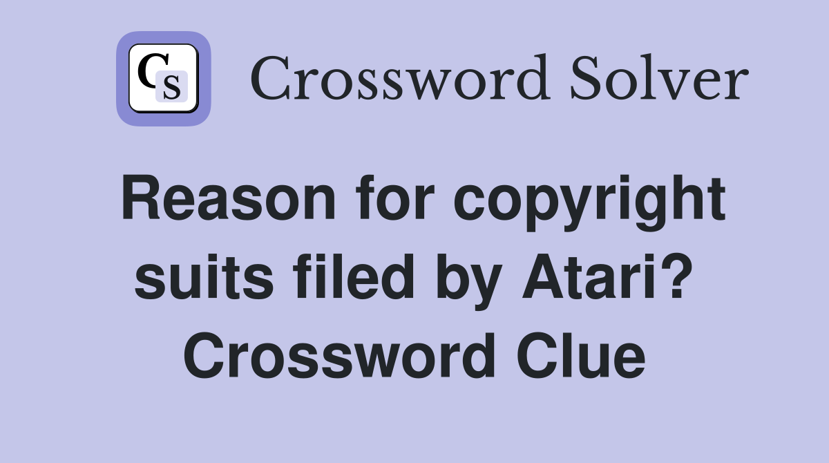 Reason for copyright suits filed by Atari? Crossword Clue Answers