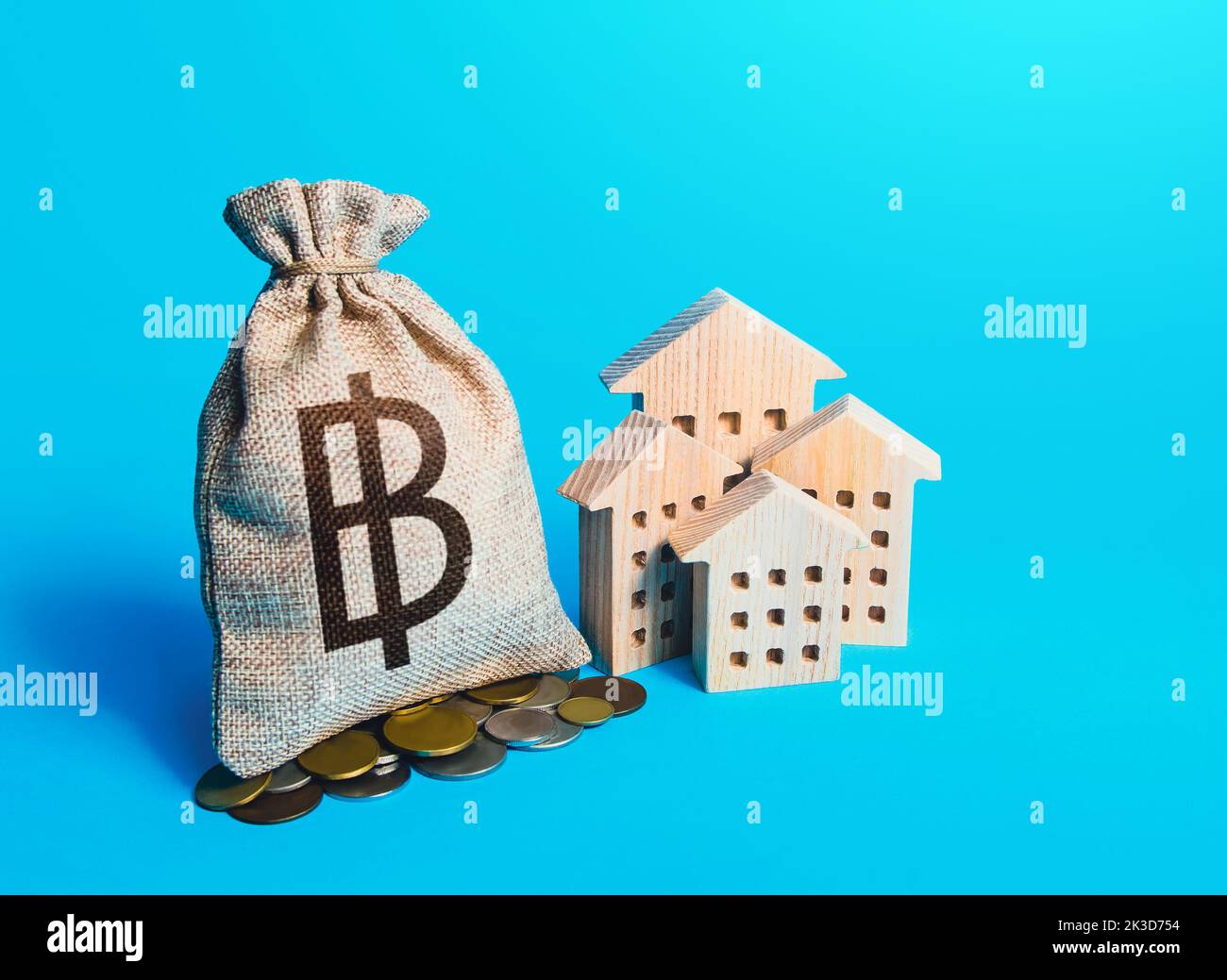 Houses and thai baht money bag Real estate investment and rental