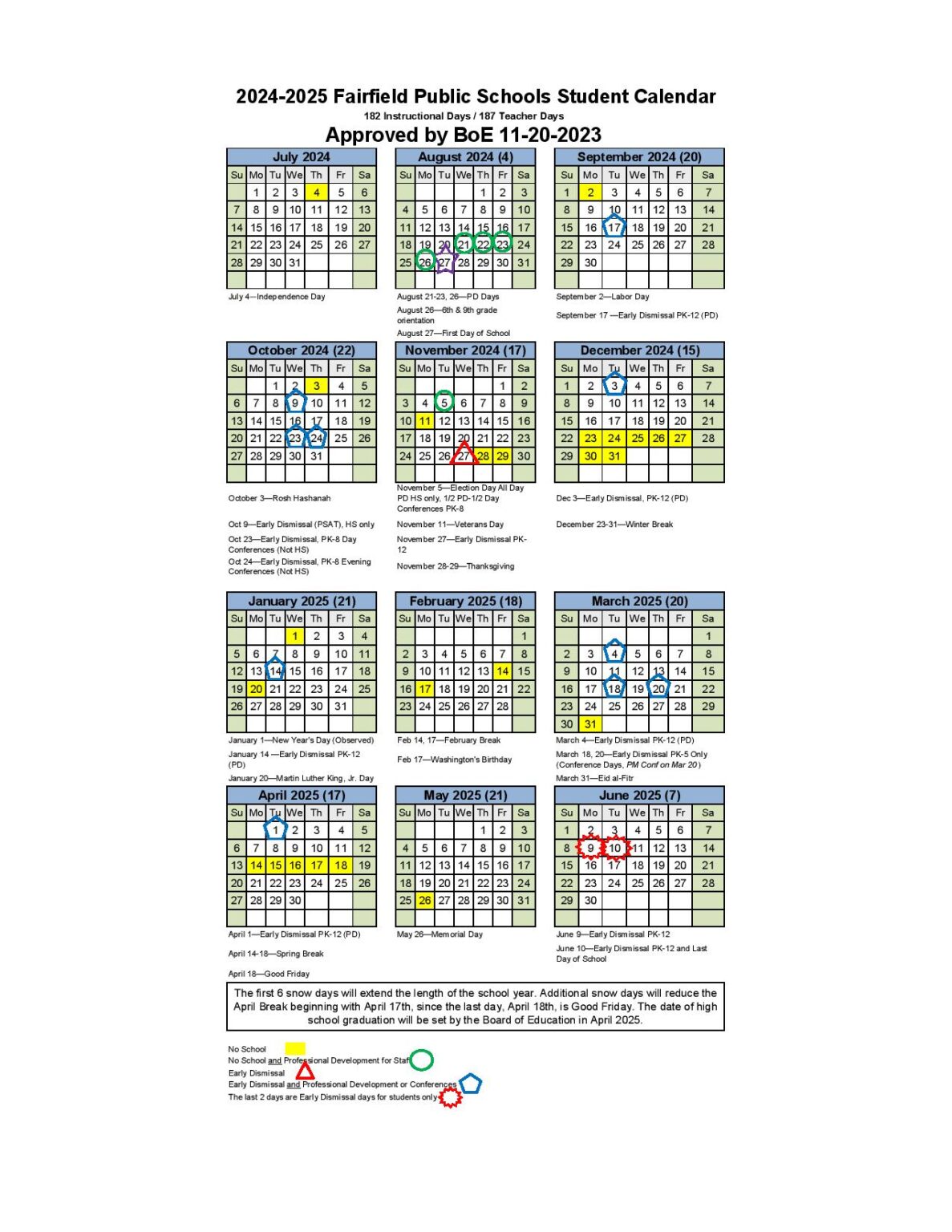 Fairfield Public Schools Calendar 2024 2025 Holiday Dates New