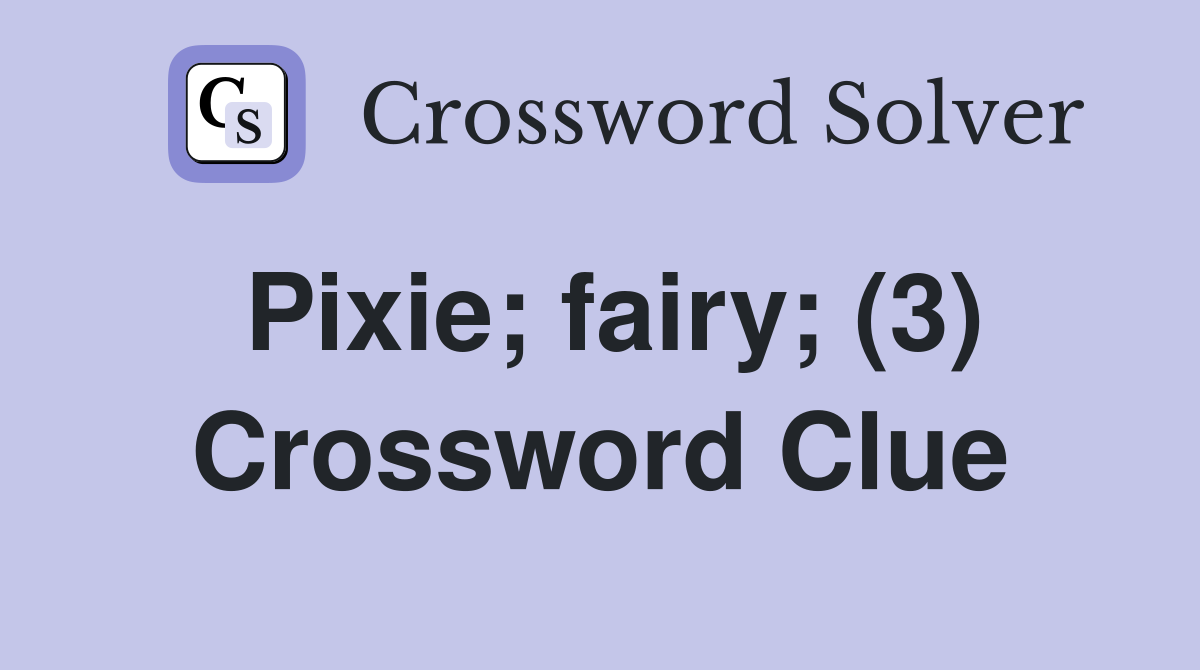 Pixie fairy (3) Crossword Clue Answers Crossword Solver