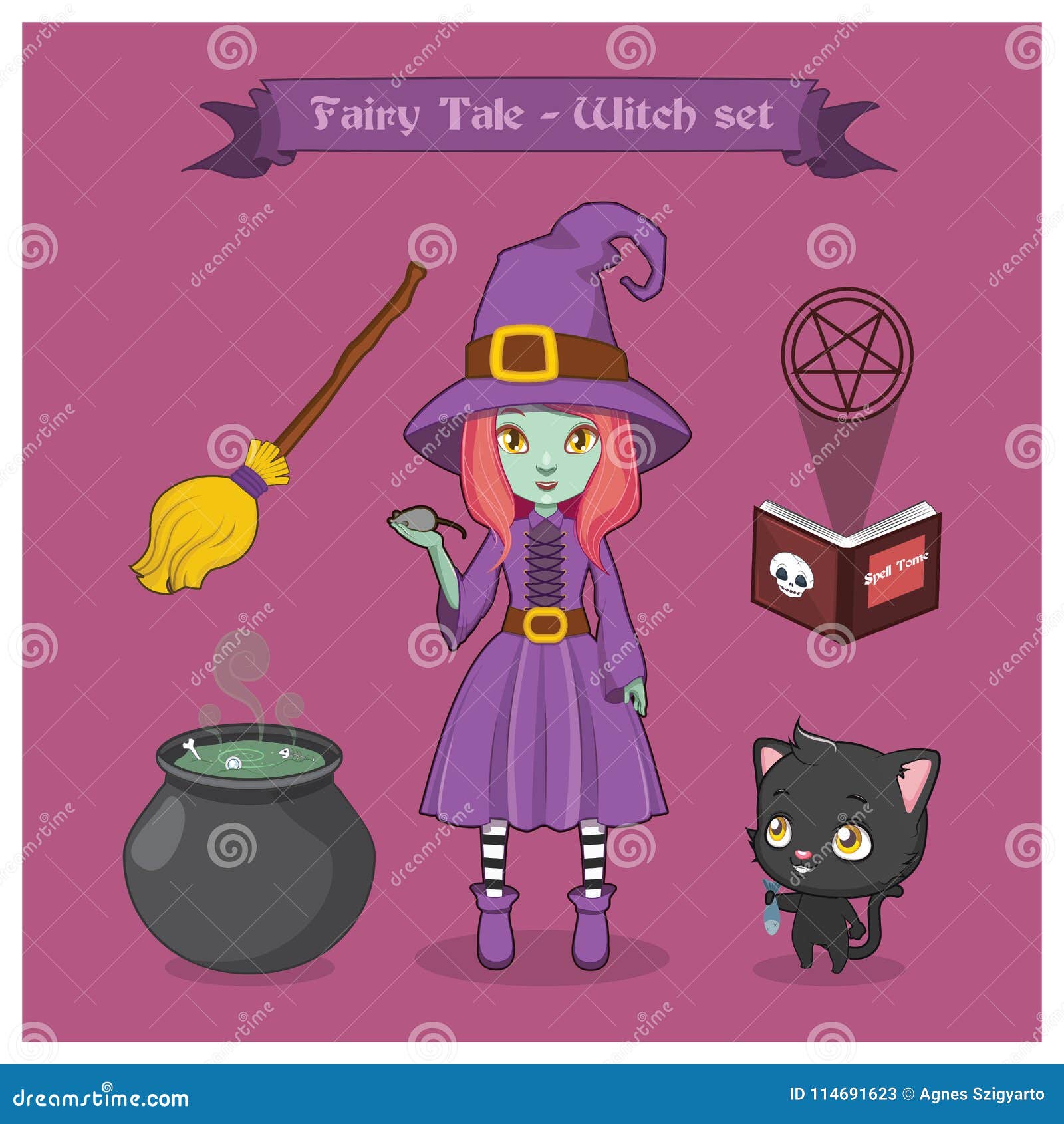 Fairy tale witch set stock vector Illustration of fish 114691623