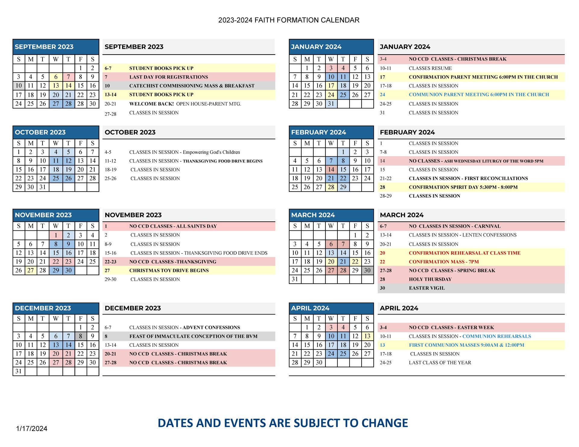Printable Faith Formation Calendar