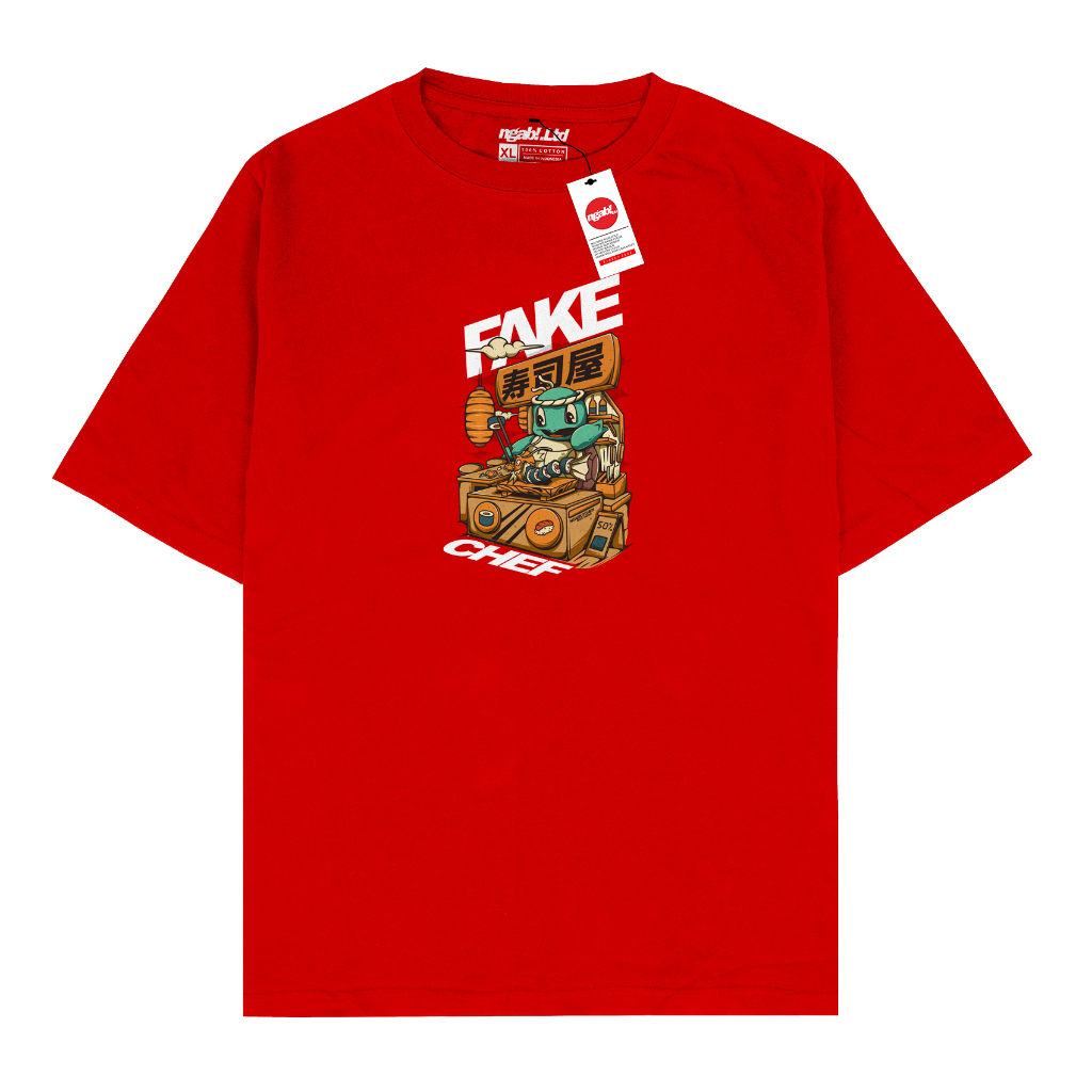 Jual Ngab Kaos Dewasa Fake Chef Merah NB058 Unisex Pria Wanita Cotton