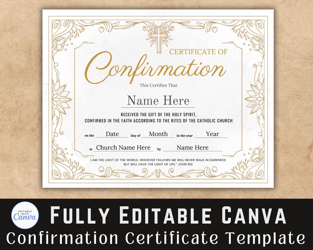 Confirmation Certificate Portrait Customizable Downloadable