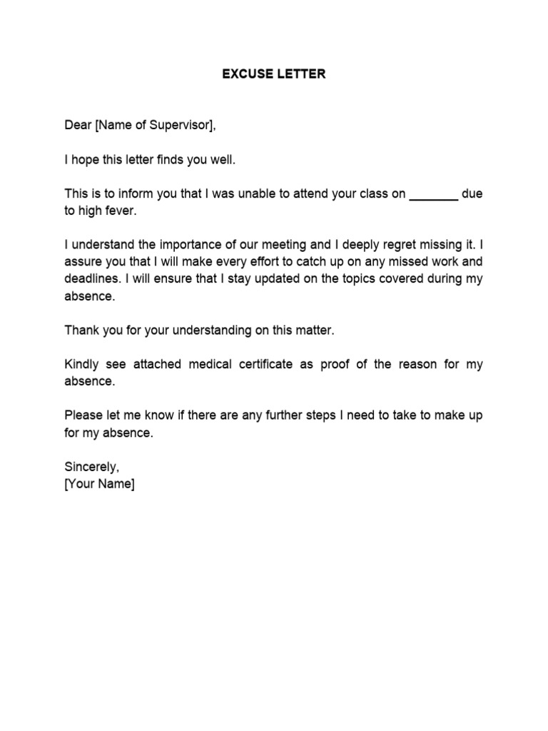 Excuse Letter for Work Free Google Docs Template gdoc io