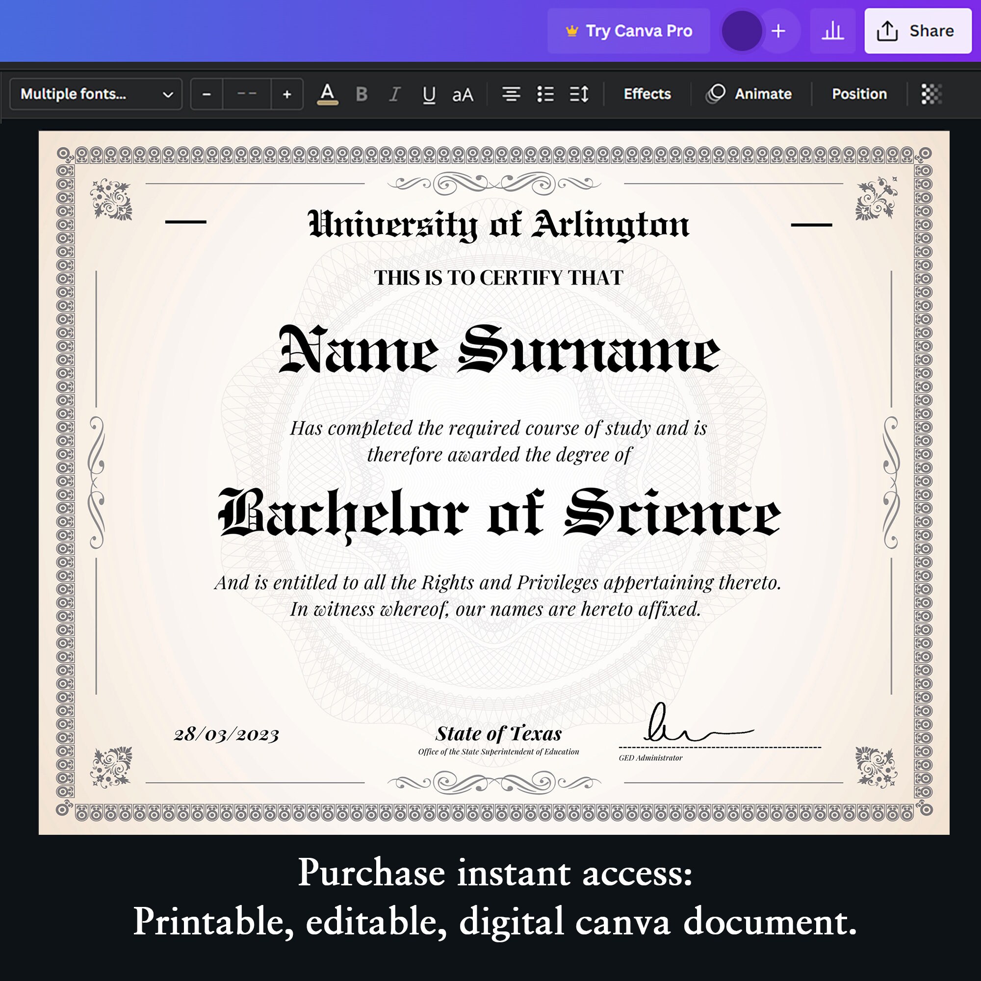 College Diploma Fake GED Diploma Editable High School Diploma Printable