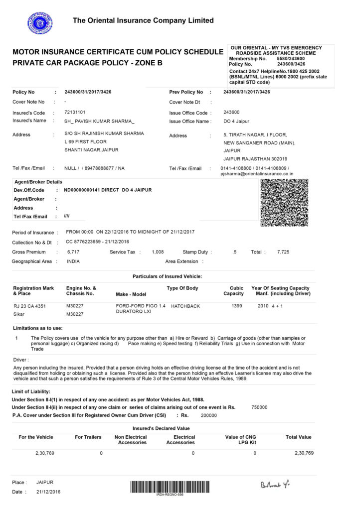 Customizable Fake Proof Of IFCC Tokio Car Insurance