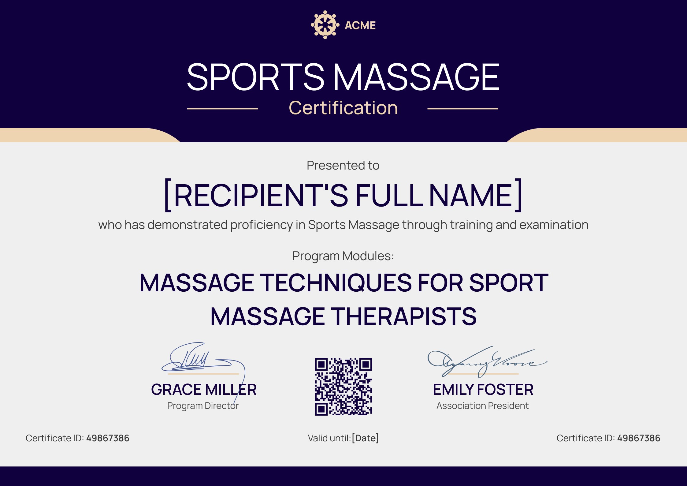 Modern and bold massage therapist certificate template