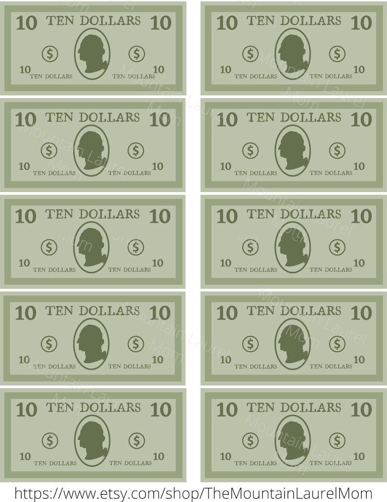 Printable Play Money 10 Bill PDF