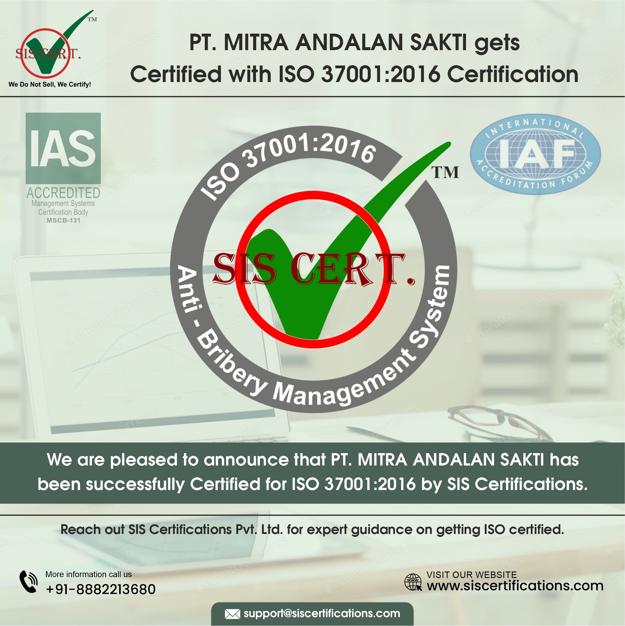 PT MITRA ANDALAN SAKTI achieved ISO 37001 Certification