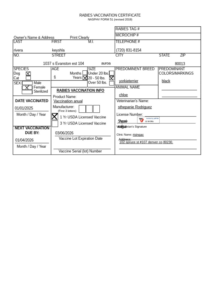 Example Of Rabies Certificate at Taylor Guss blog