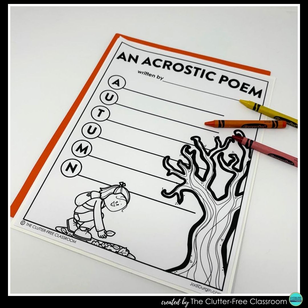 Fall Poetry Activities for Teaching Acrostic Poems to Elementary