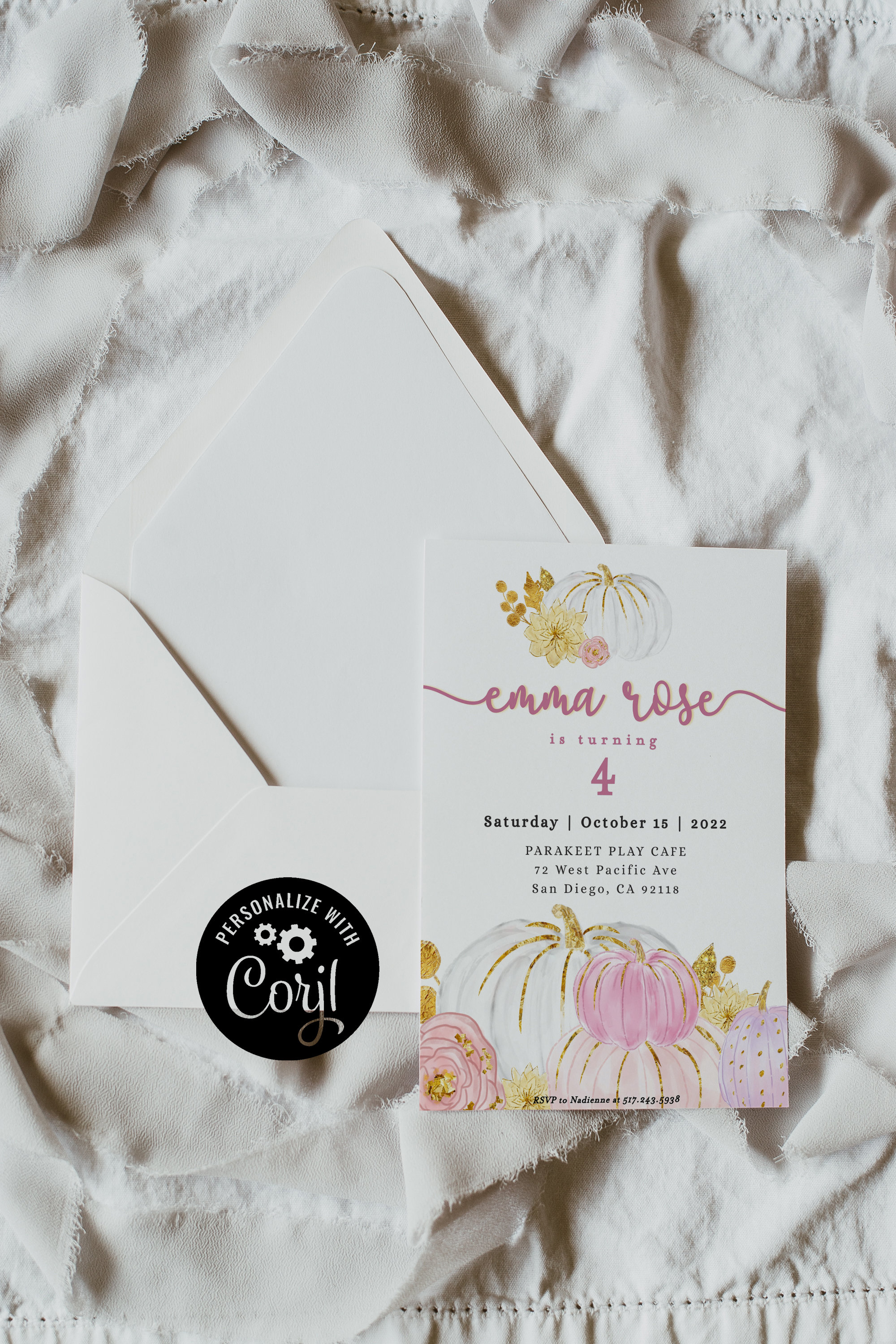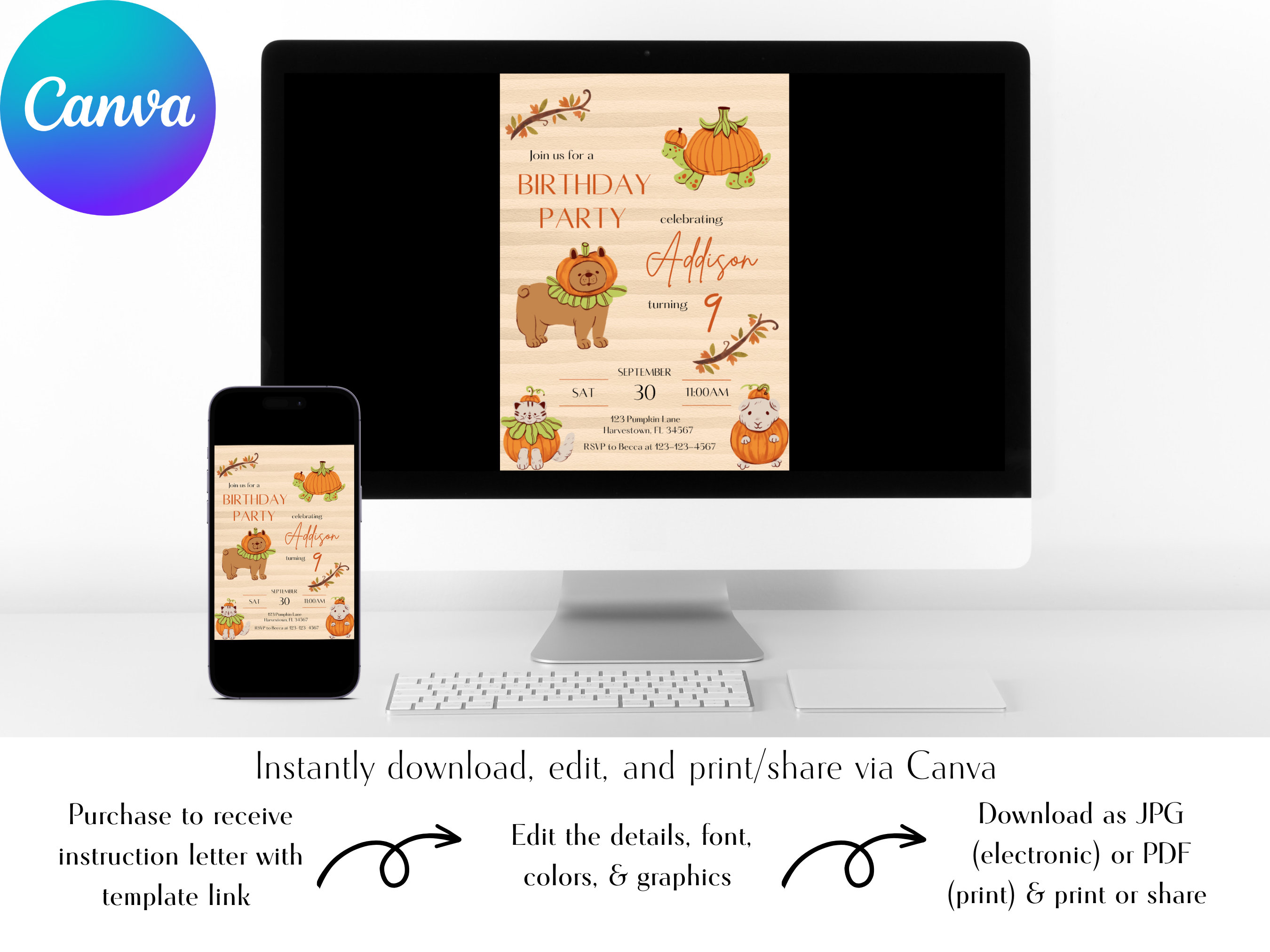 Editable Fall Birthday Invitation Template: Pumpkin Animals (digital