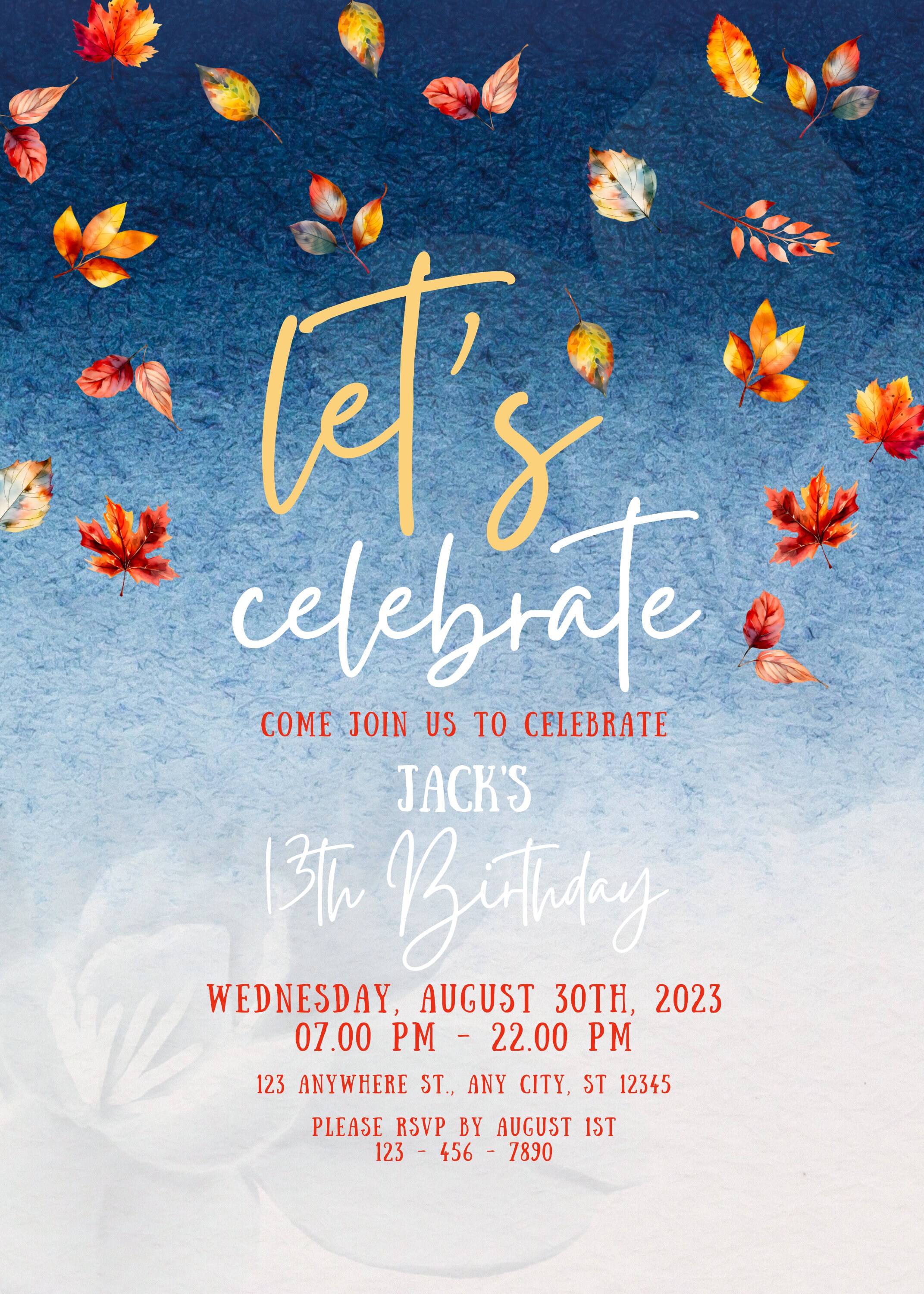 Editable Birthday Invitation Fall Birthday Autumn Birthday Fall Leaves