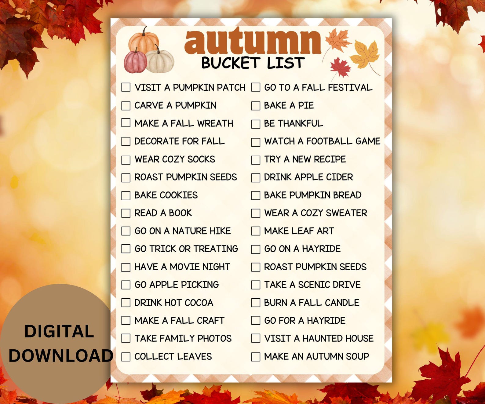 Fall Bucket List Printable Instant Download Fall Planner Fall