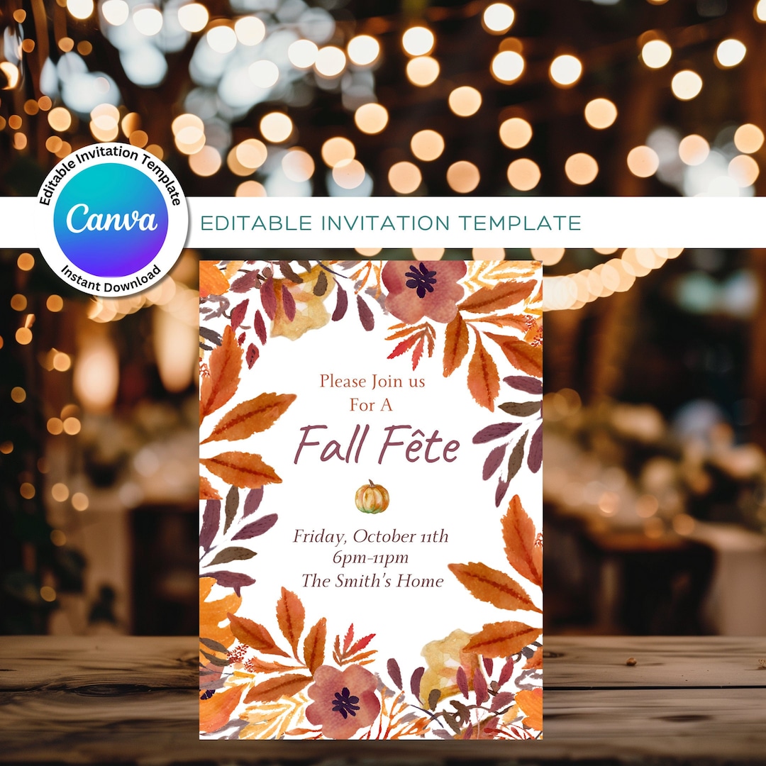 Fall Fete Party Invitation Template Editable Digital Download in Canva