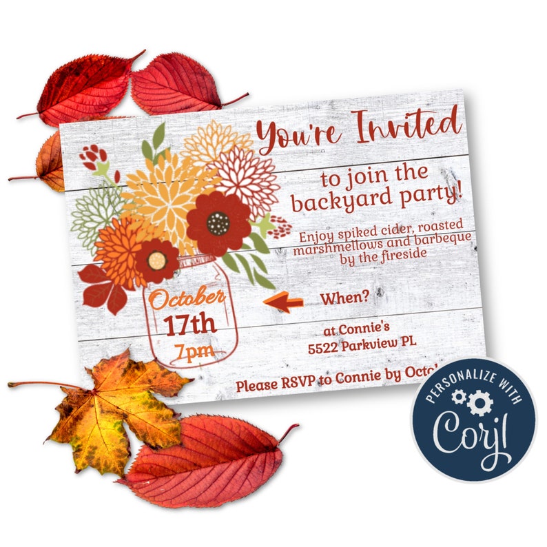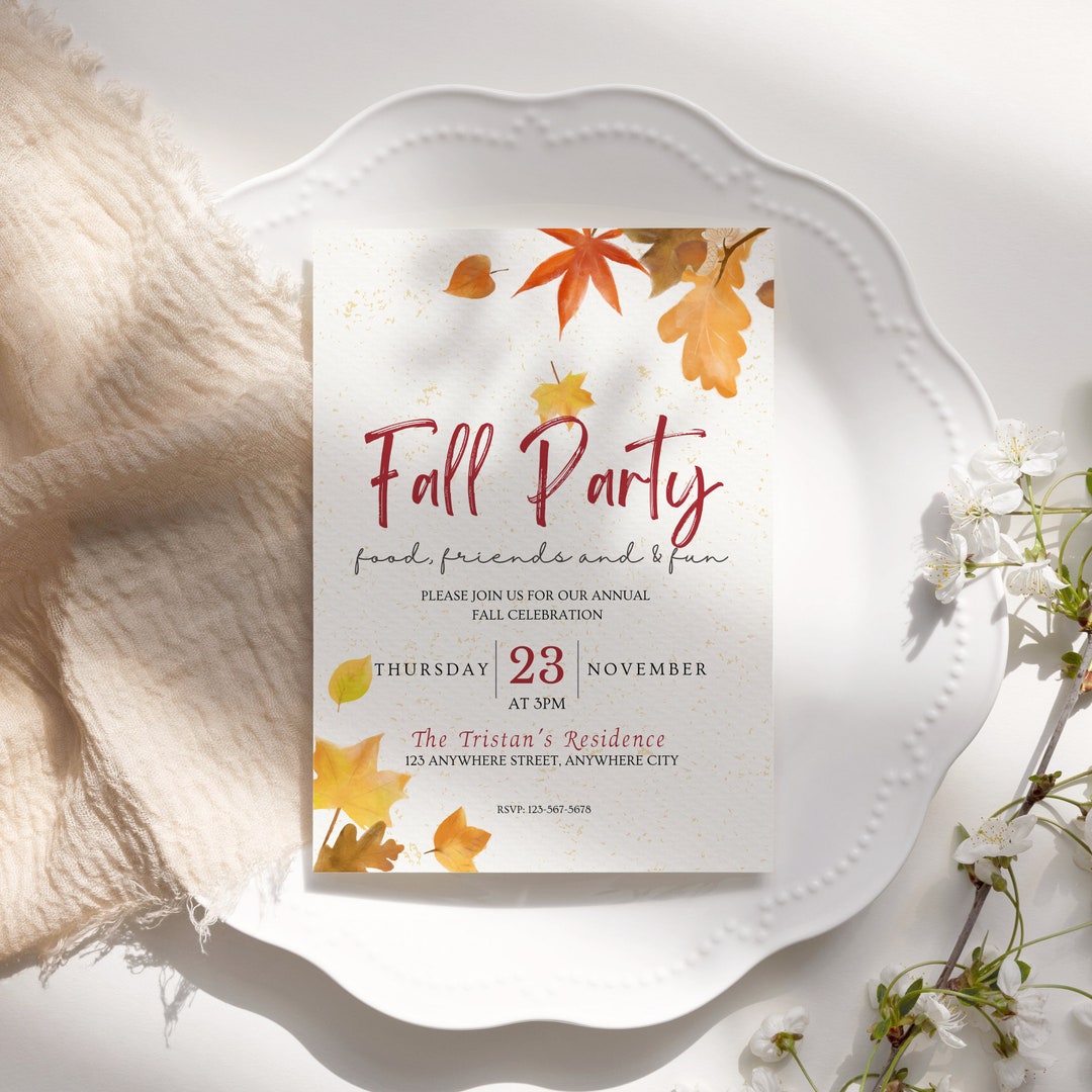 Fall Party Invitation Editable Digital Download Invitation Fall