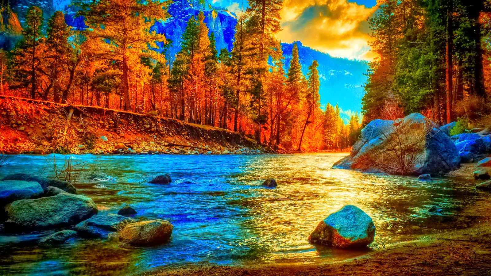 Awesome Autumn River Background Hd Desktop Wallpaper