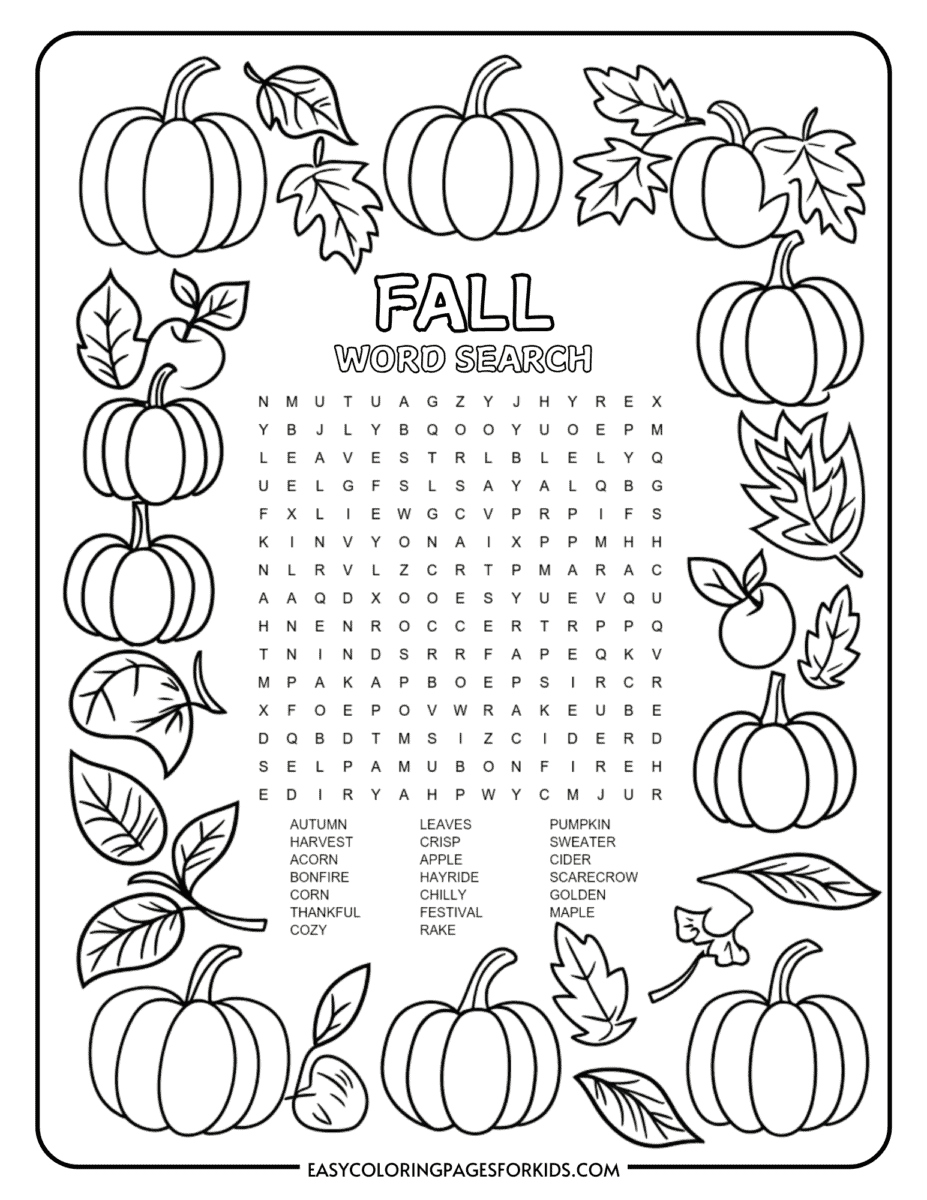 Fall Word Search Printable • The Best Kids Crafts and Activities