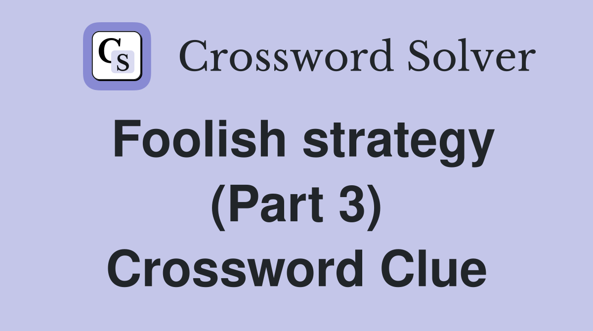 Foolish strategy (Part 3) Crossword Clue Answers Crossword Solver