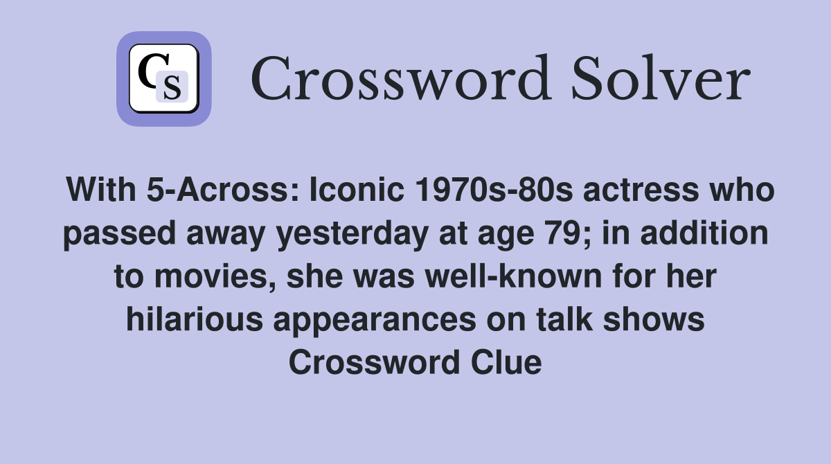 With 5 Across: Iconic 1970s 80s actress who passed away yesterday at