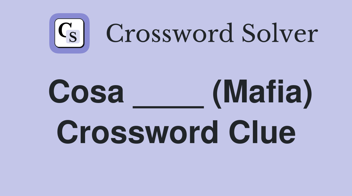 Cosa (Mafia) Crossword Clue Answers Crossword Solver